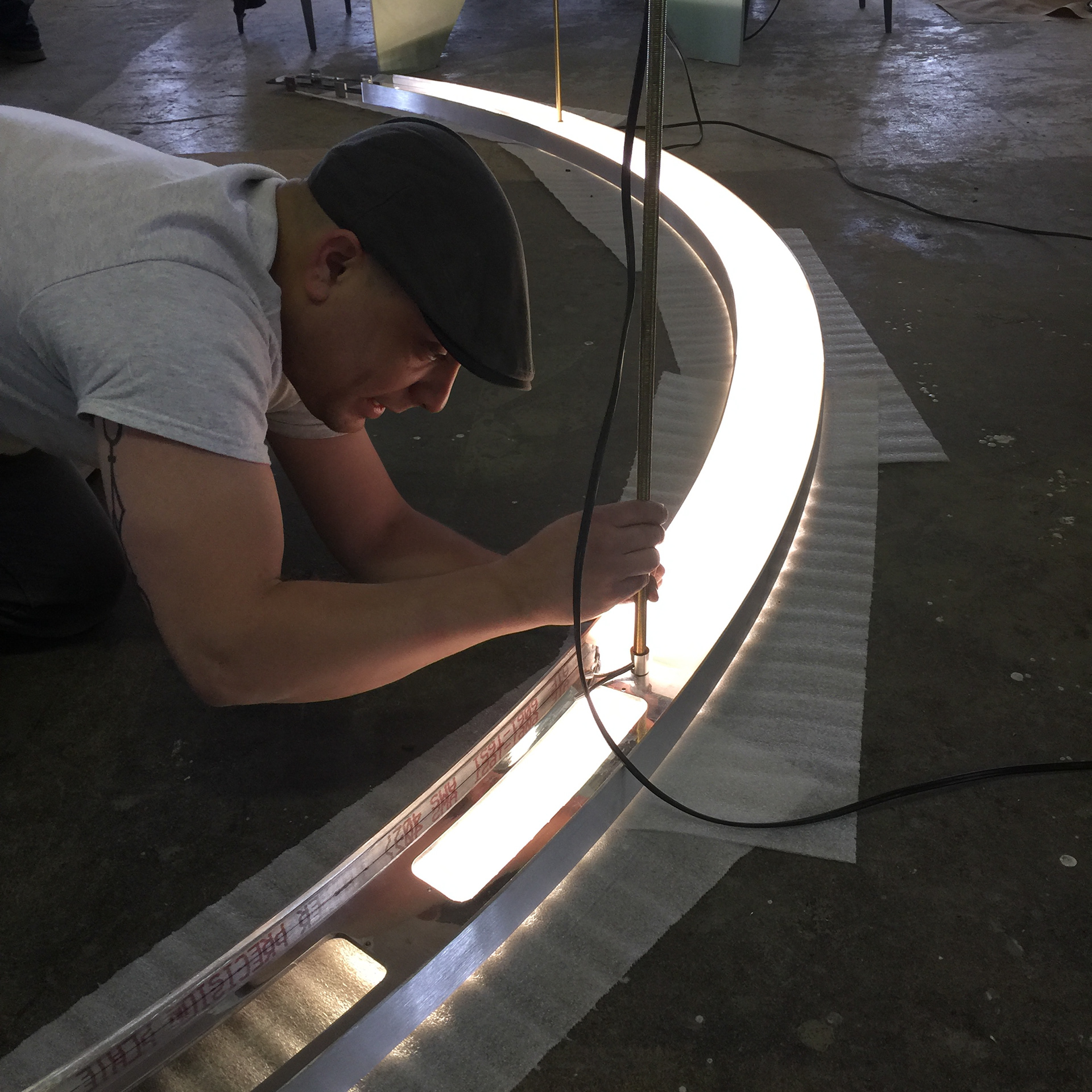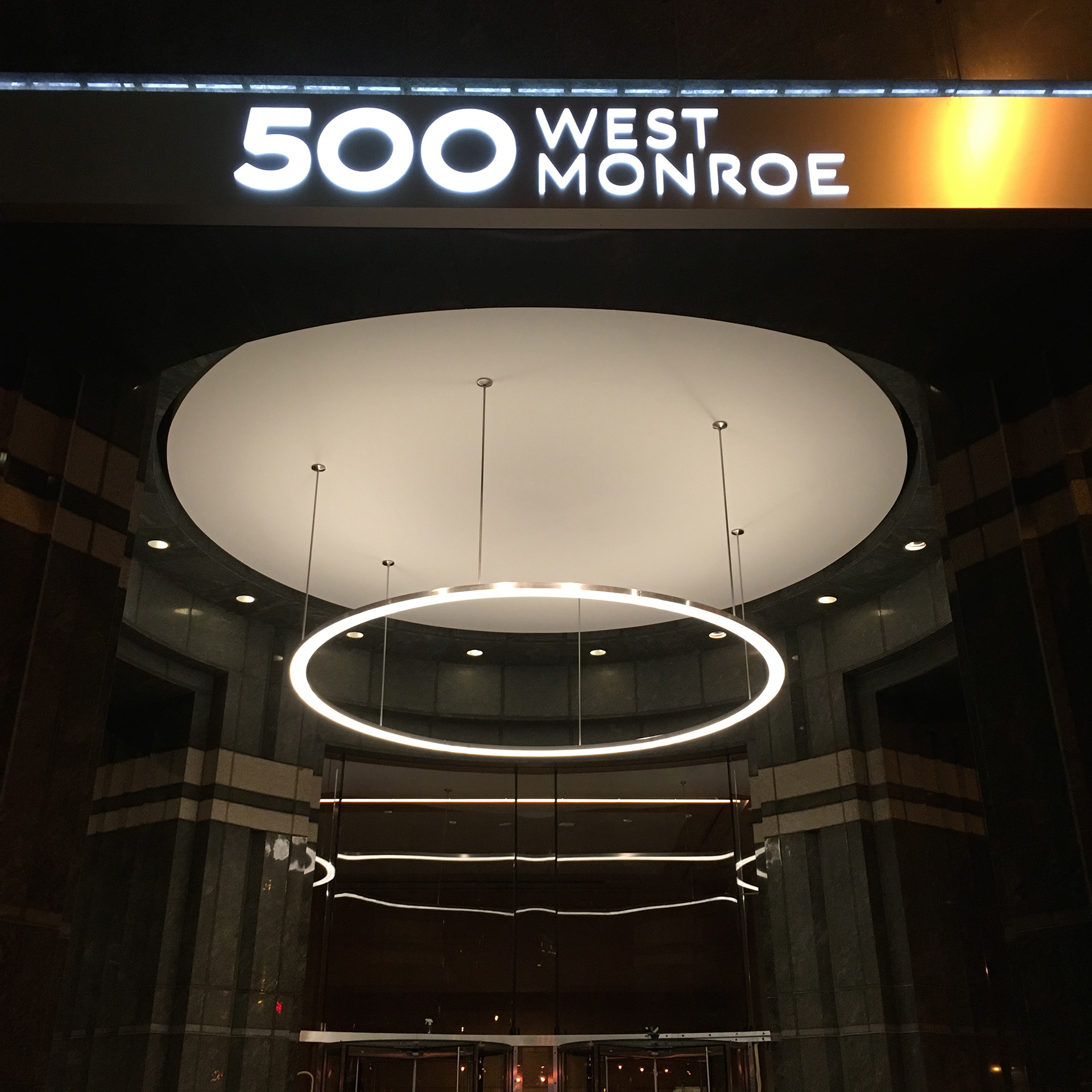 14' diameter light fixture custom built at West Supply LLC for 500 W Monroe, Chicago IL.