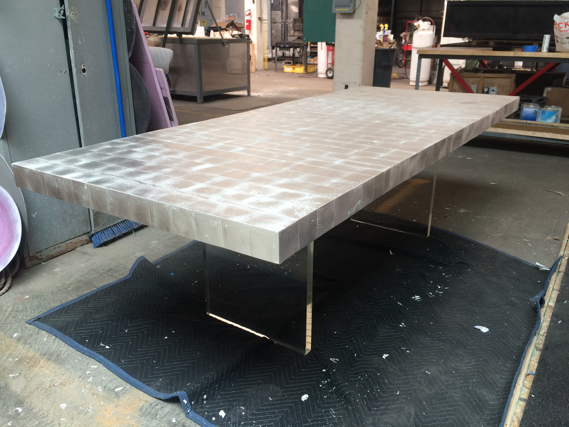 Solid Cast Glass and Marble Table