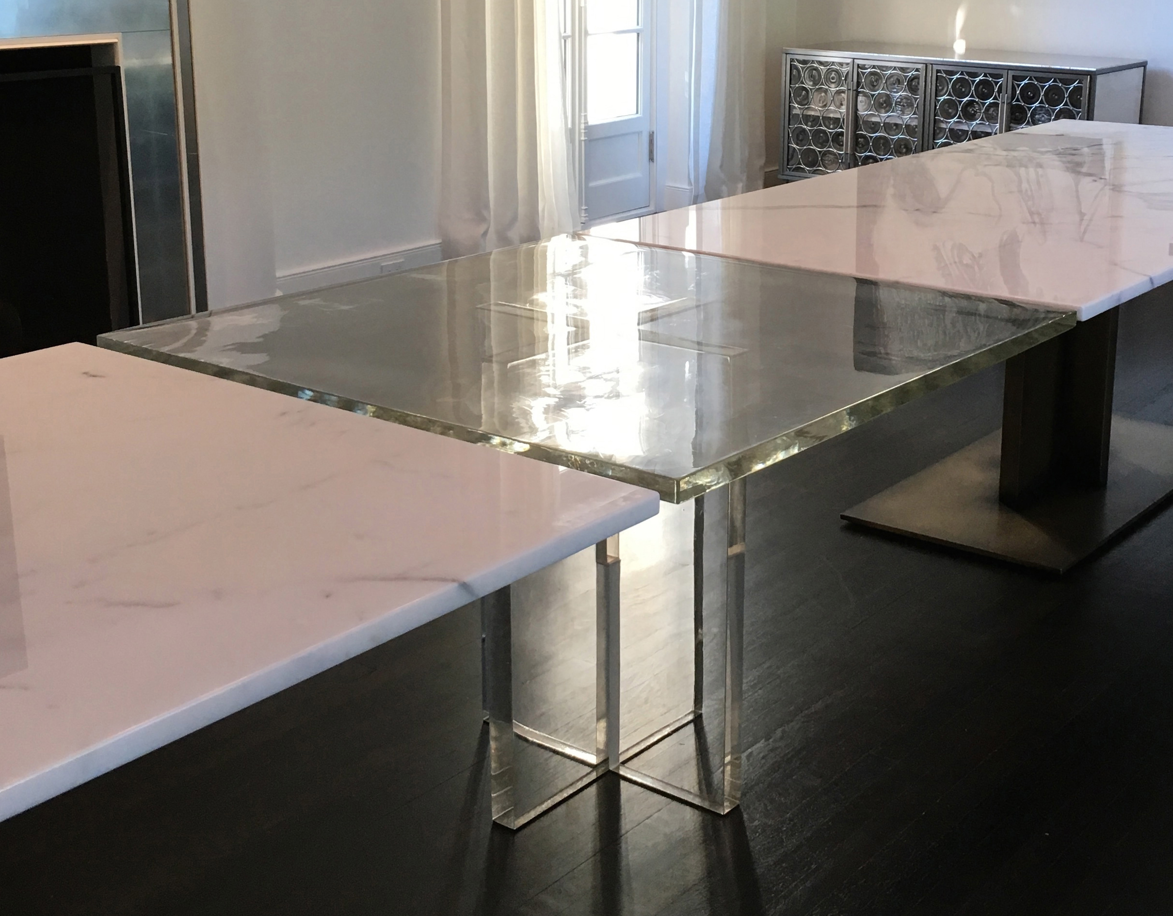 Solid Cast Glass and Marble Table